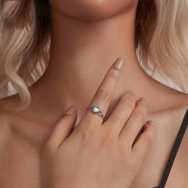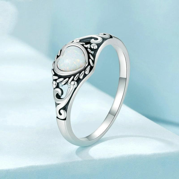 S925 Sterling Silver Opal Pattern Love Ring(No.9)