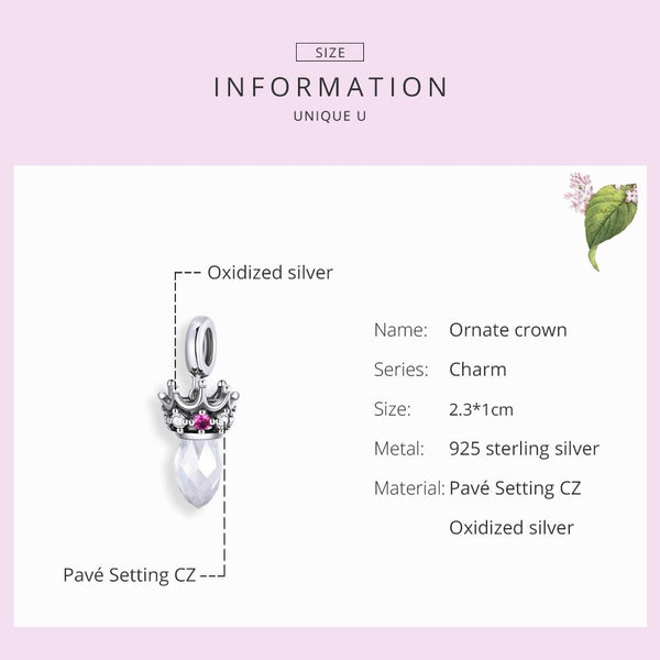 S925 Sterling Silver Ornate Crown Pendant DIY Bracelet Necklace Accessories