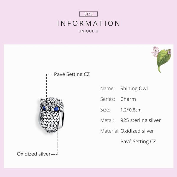 S925 Sterling Silver Owl Beads DIY Bracelet Necklace Accessories