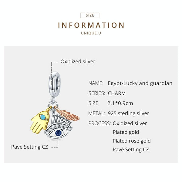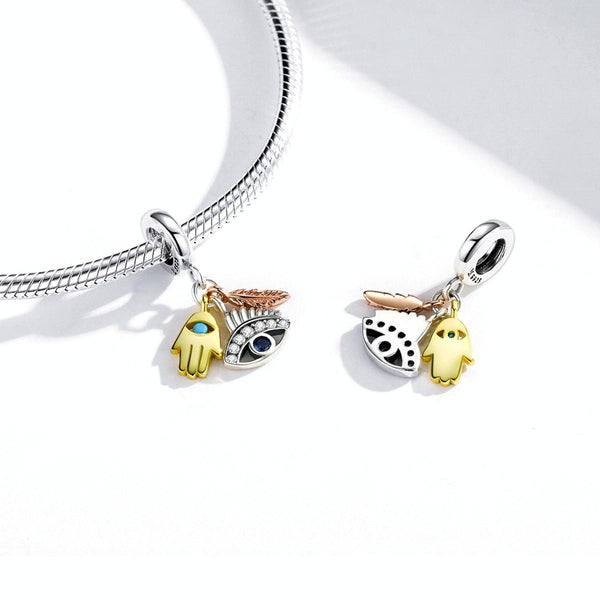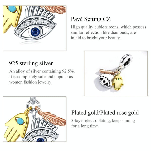 S925 Sterling Silver Palm Eye Feather Pendant DIY Bracelet Necklace Accessories