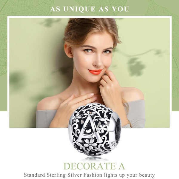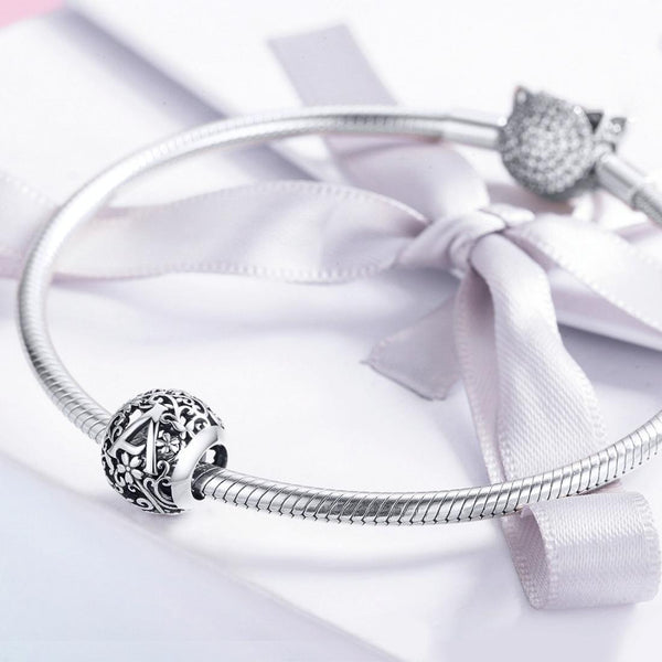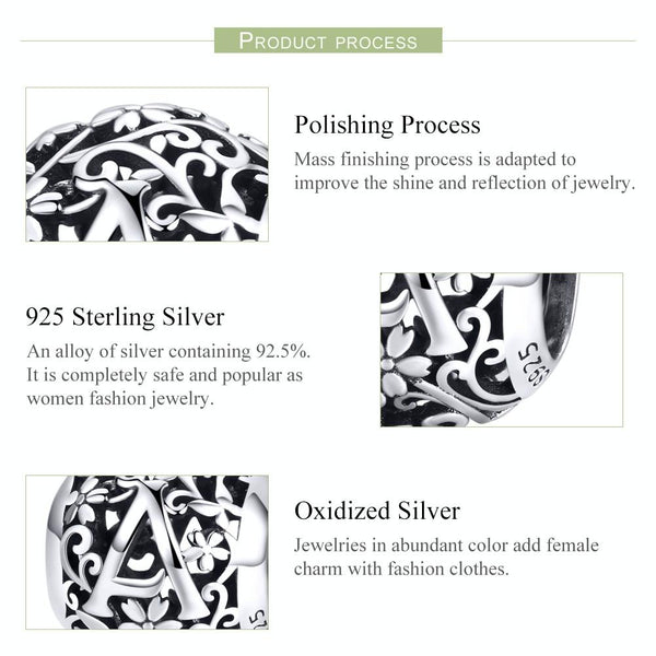 S925 Sterling Silver Pattern Letter Beads DIY Bracelet Beaded