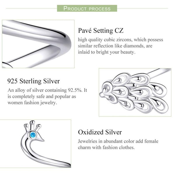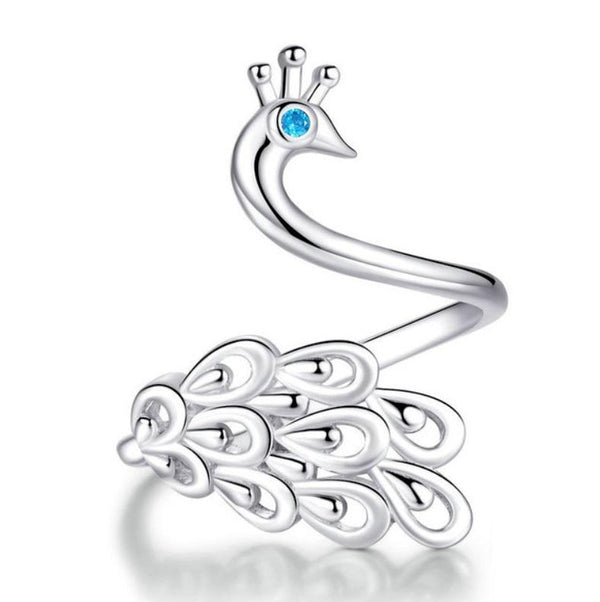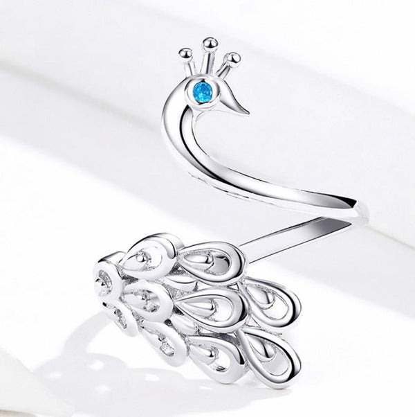 S925 Sterling Silver Peacock White Gold Plated Open Ring