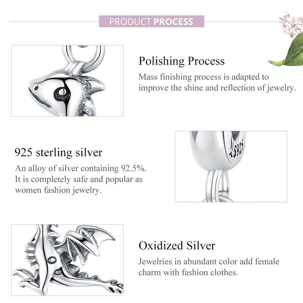 S925 Sterling Silver Pendant DrogonDinosaur Charm DIY Bracelet Accessories