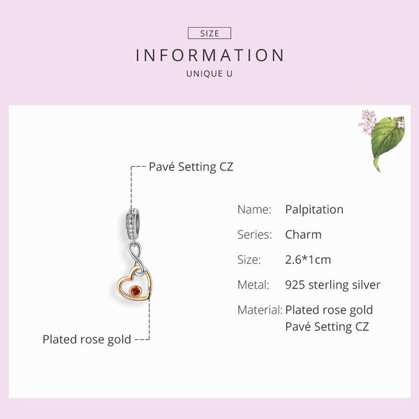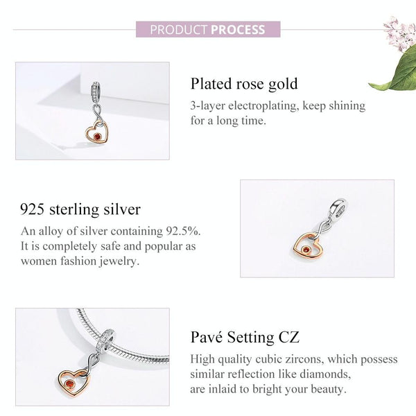 S925 Sterling Silver Pendant Heart Shaped Rose Gold Beads DIY Bracelet Necklace Accessories
