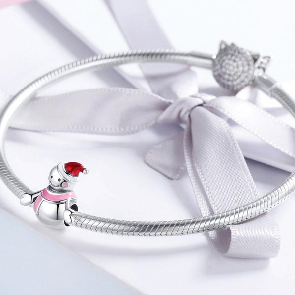 S925 Sterling Silver Pendant Miss Snowman Beads DIY Bracelet Necklace Accessories