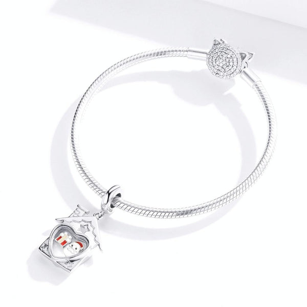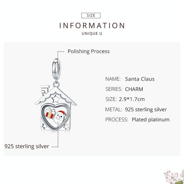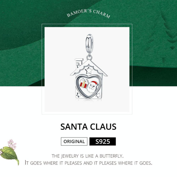 S925 Sterling Silver Pendant Platinum Plated Santa Beads DIY Bracelet Necklace Accessories