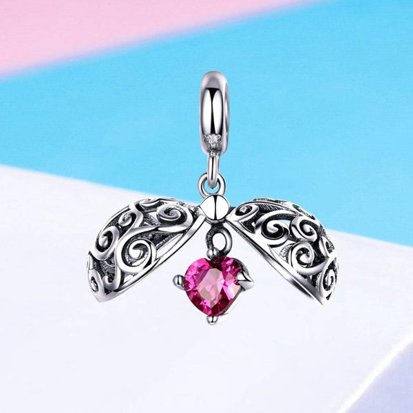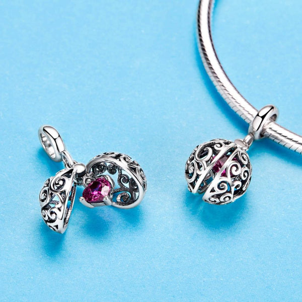 S925 Sterling Silver Pendant Round Pendant with Secret Fruit Pattern Opened with Heart-shaped Zircon Beads DIY Bracelet Necklace Accessories