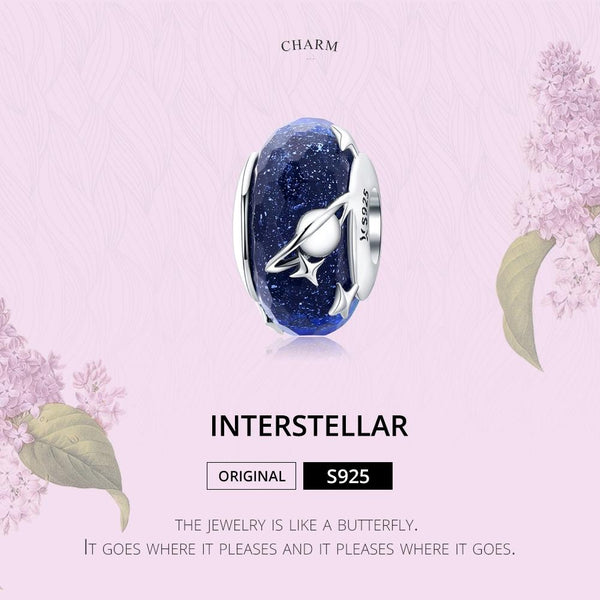 S925 Sterling Silver Pendant Starry Sky Faceted Glass Beads Blue Interstellar Loose Beads