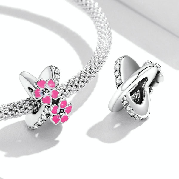 S925 Sterling Silver Pink Flower Beads DIY Bracelet Necklace Accessories