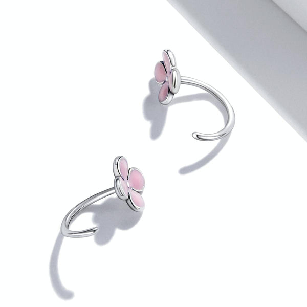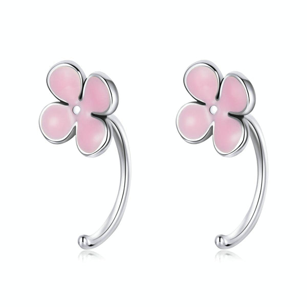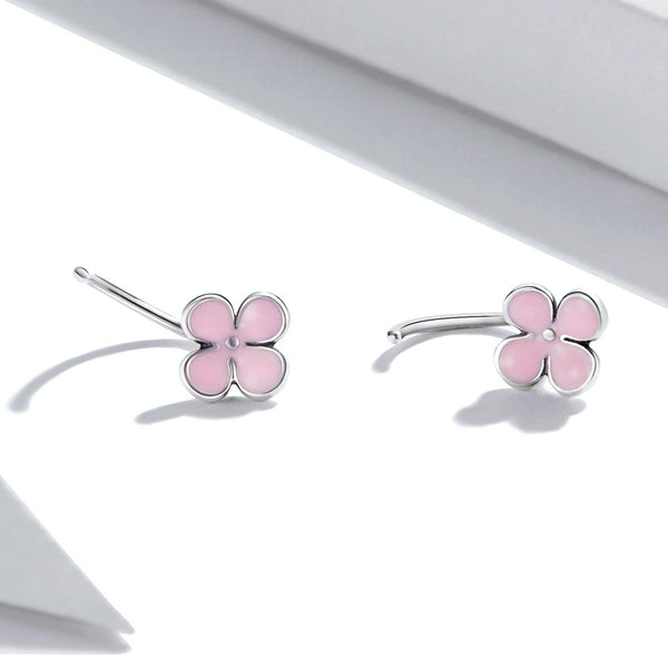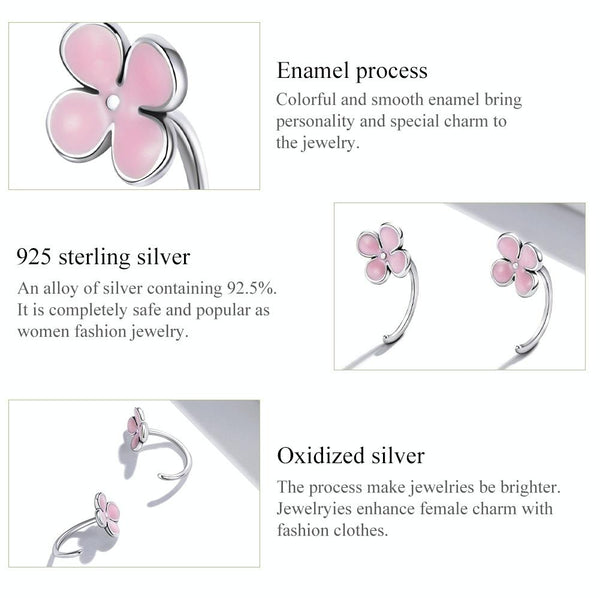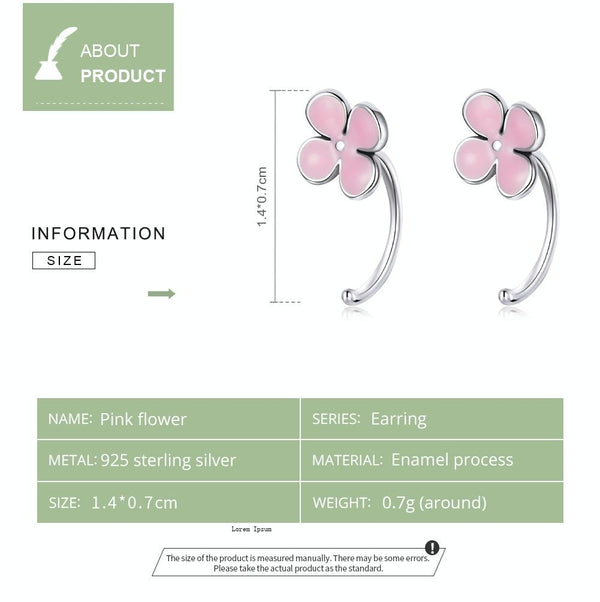 S925 Sterling Silver Pink Flowers Ear Studs Women Earrings