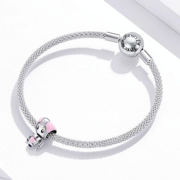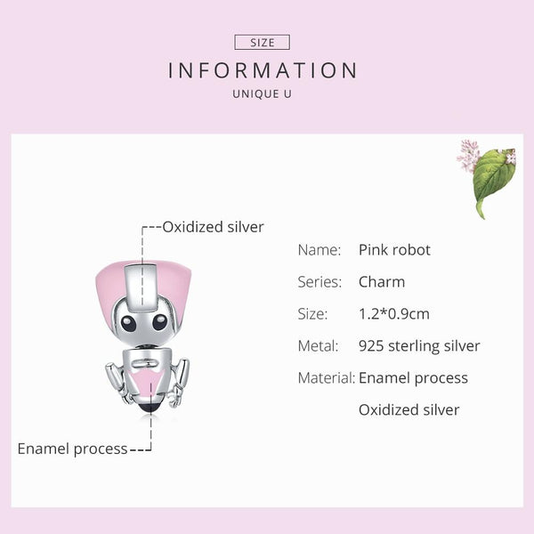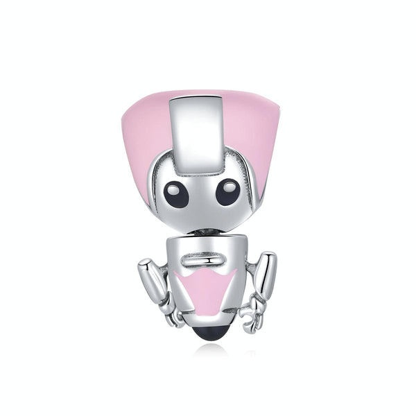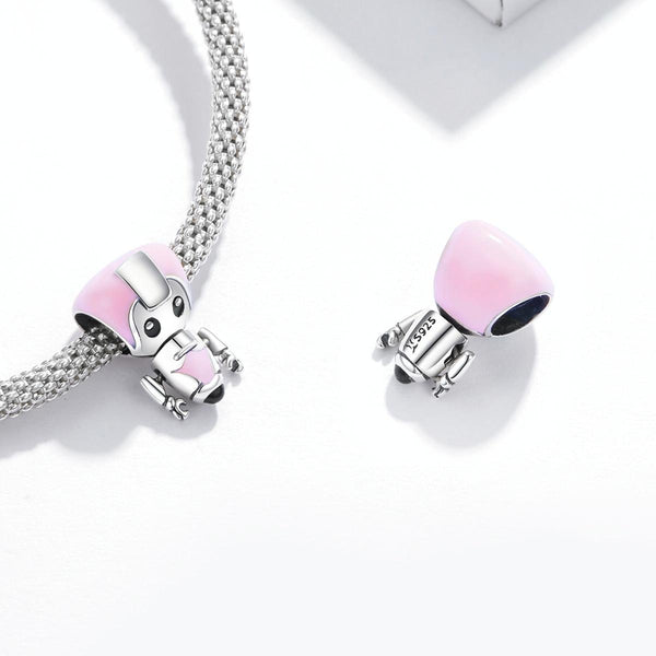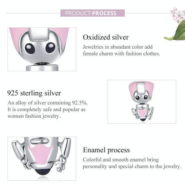S925 Sterling Silver Pink Robot Beads DIY Bracelet Necklace Accessories
