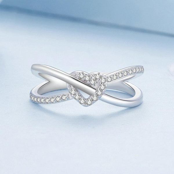 S925 Sterling Silver Plated Gold Heart-Shaped Wrap Double-Layer Rings, Size: 6