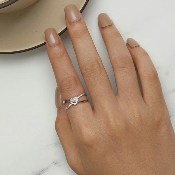 S925 Sterling Silver Plated Gold Heart-Shaped Wrap Double-Layer Rings, Size: 7