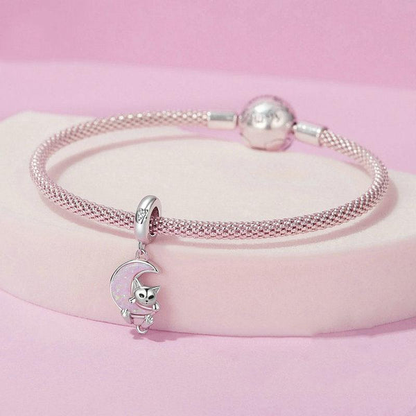 S925 Sterling Silver Plated Platinum Fantasy Moon Cute Cat Pendant(SCC2879)