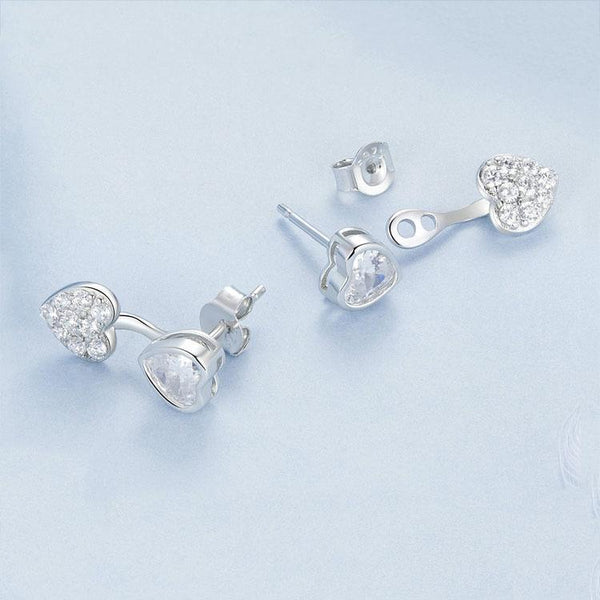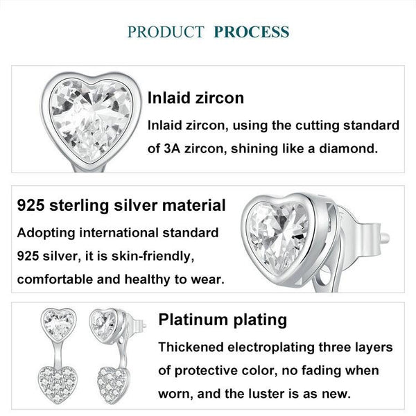 S925 Sterling Silver Plated With Platinum And Zircon Heart Earrings(BSE1043)