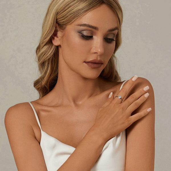 S925 Sterling Silver Plated With White Gold 1 Carat Moissanite Ring(No.7)