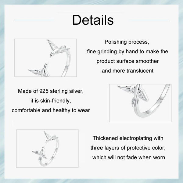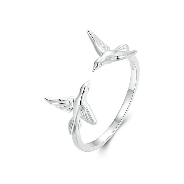 S925 Sterling Silver Platinum Plated Bird Opening Adjustable Ring(SCR1006-E)