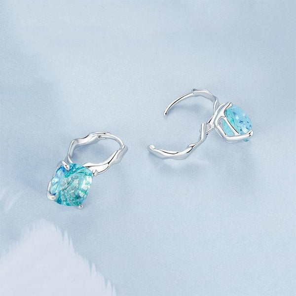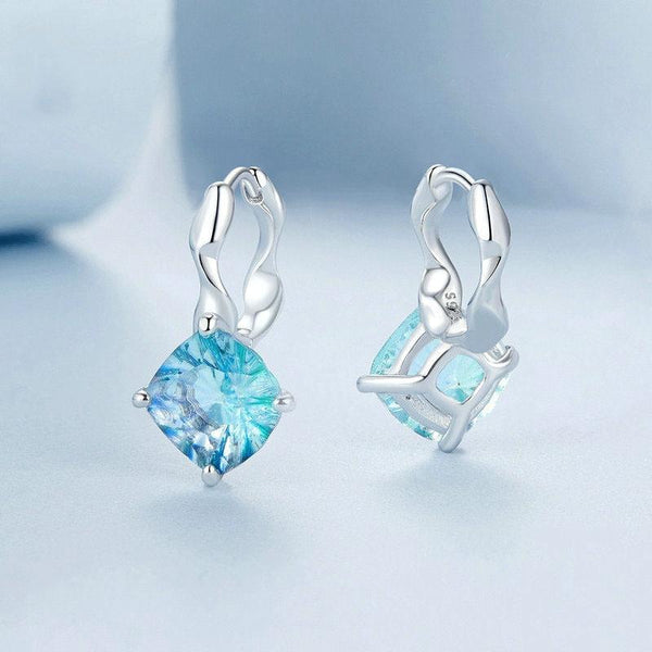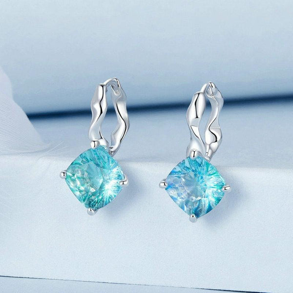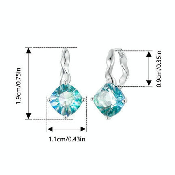 S925 Sterling Silver Platinum-plated Blue-green Glass Diamond Earrings(BSE1047)