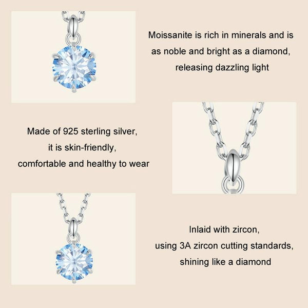 S925 Sterling Silver Platinum Plated Blue Moissanite Necklace(MSN031)