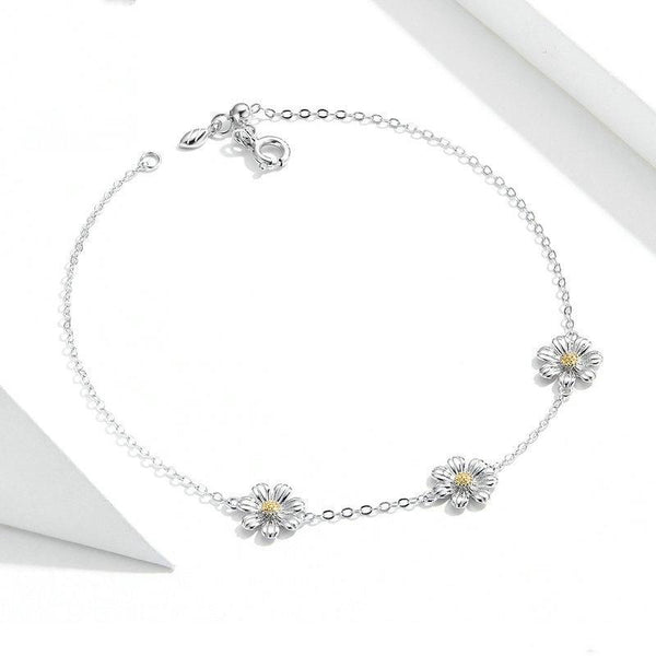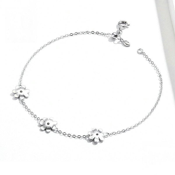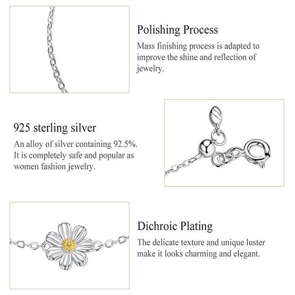 S925 Sterling Silver Platinum Plated Bracelet Cute Daisy Bracelet