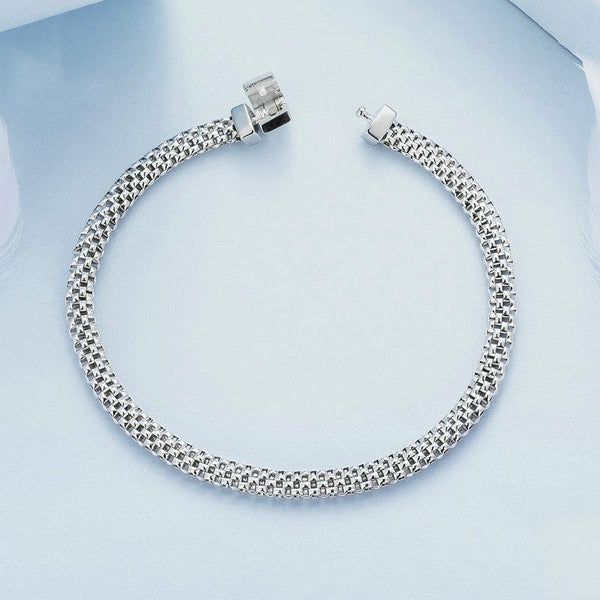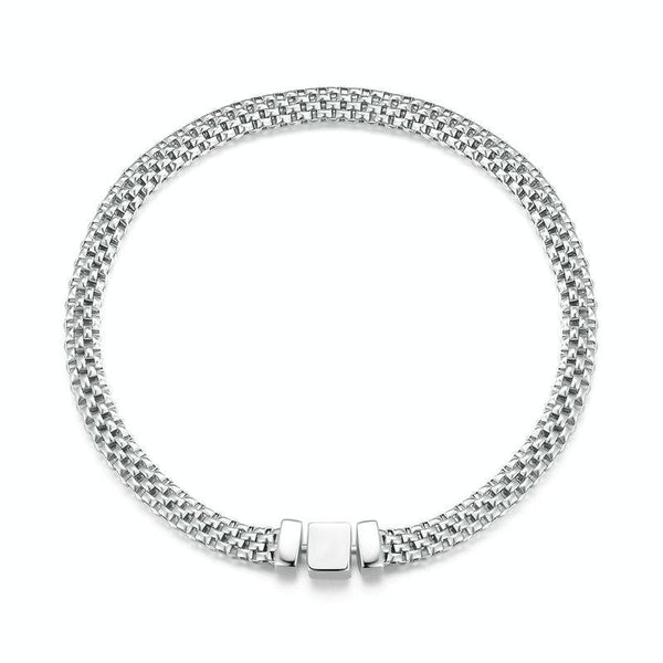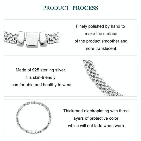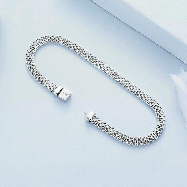 S925 Sterling Silver Platinum Plated Braided Basic Bracelet, Size: 19cm