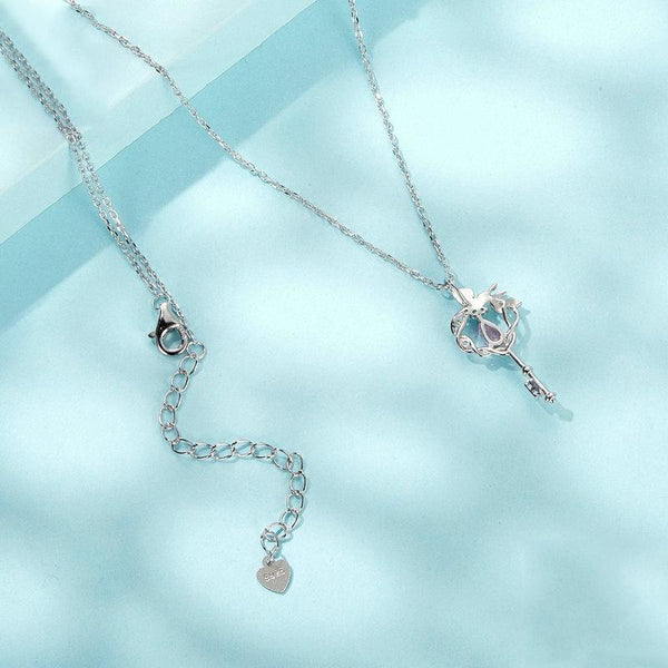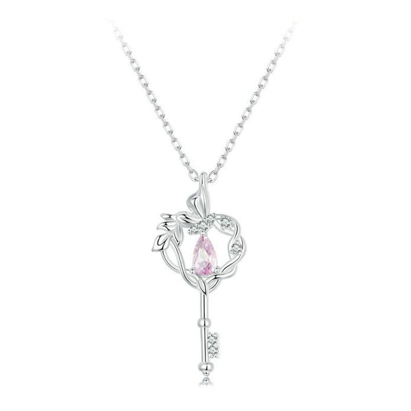 S925 Sterling Silver Platinum-plated Butterfly Vine Love Key Necklace(SCN518)