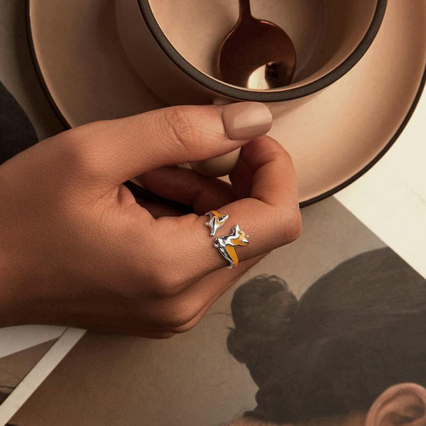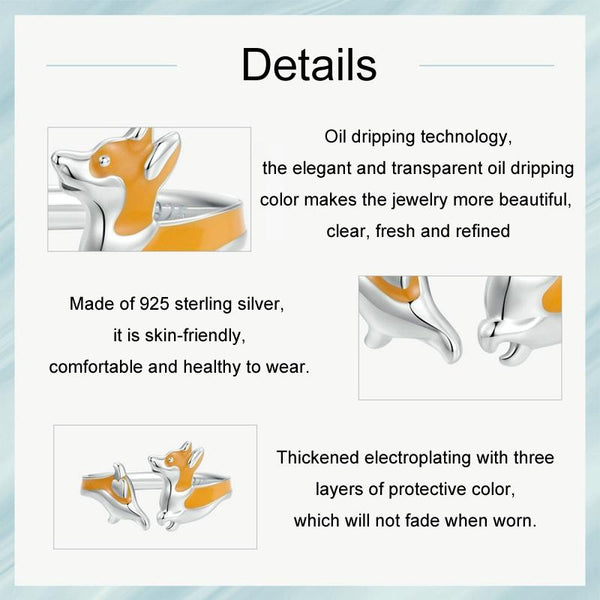 S925 Sterling Silver Platinum-plated Cute Naughty Corgi Pet Adjustable Open Ring(SCR1014-E)