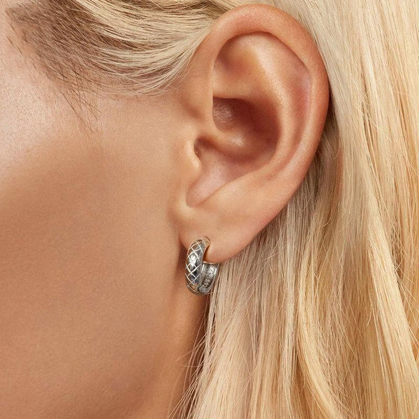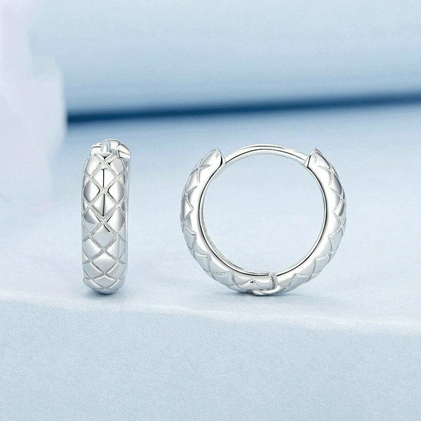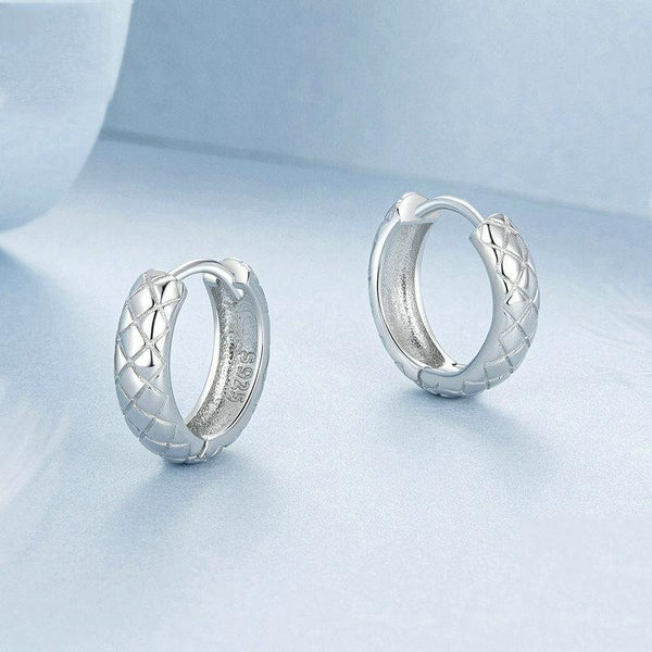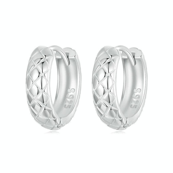 S925 Sterling Silver Platinum Plated Diamond Pattern Earrings(BSE983)