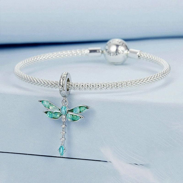 S925 Sterling Silver Platinum Plated Dragonfly DIY Pendant(BSC983)