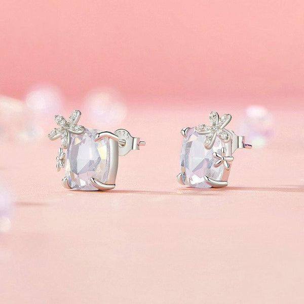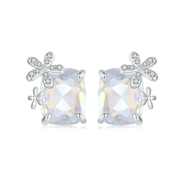 S925 Sterling Silver Platinum-plated Dream Flower Large Main Stone Earrings(SCE1724)