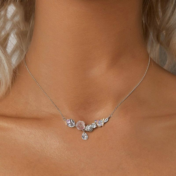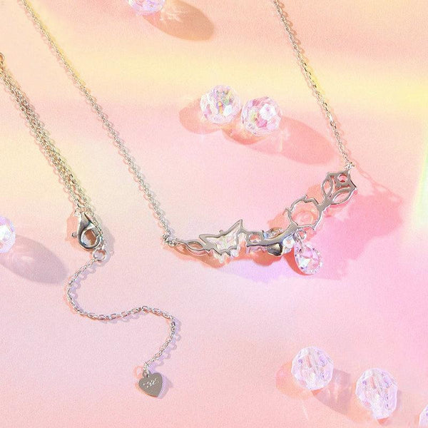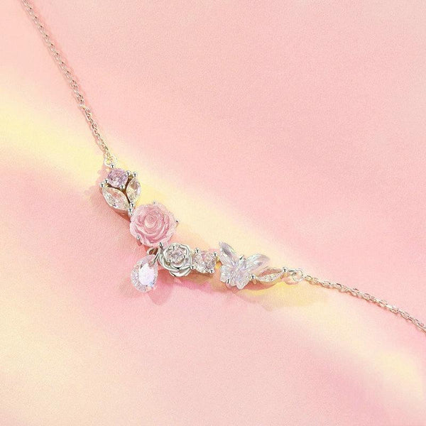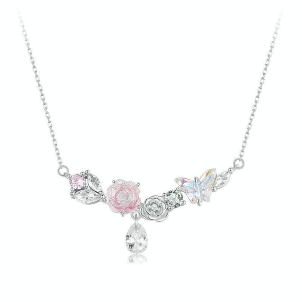 S925 Sterling Silver Platinum Plated Fantasy Butterfly Flower Necklace(SCN521)