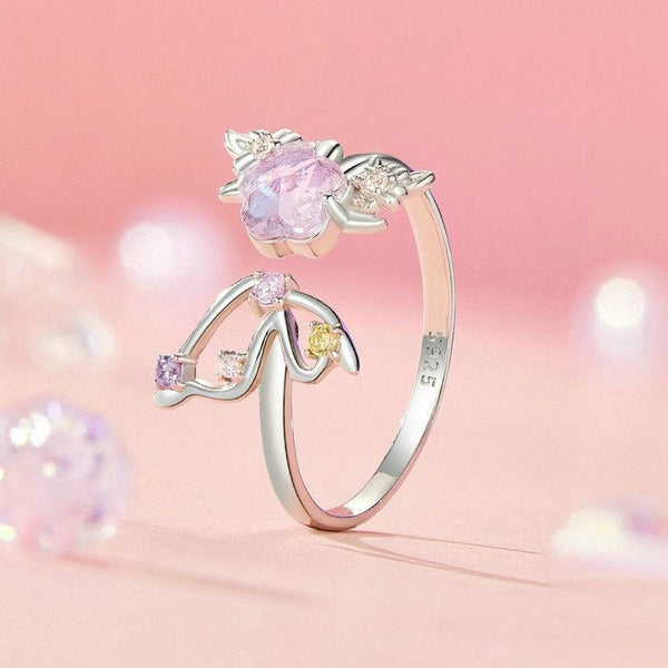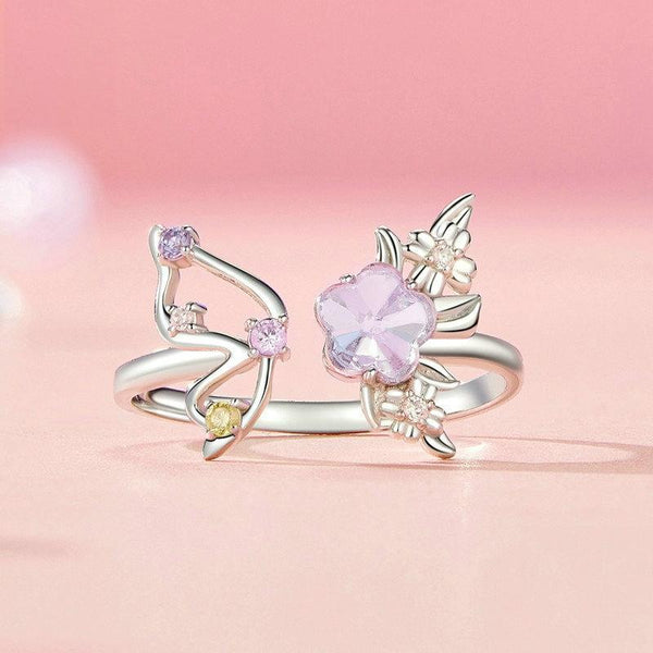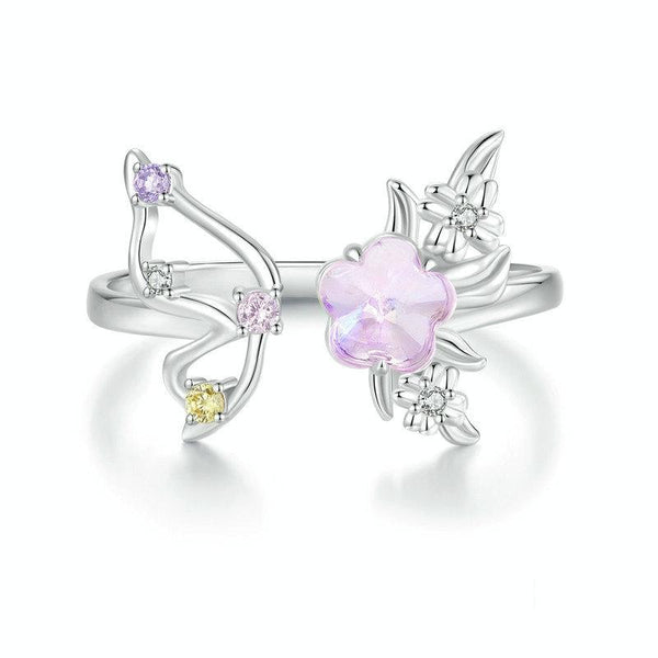 S925 Sterling Silver Platinum Plated Flower Butterfly Adjustable Ring(SCR1011-E)