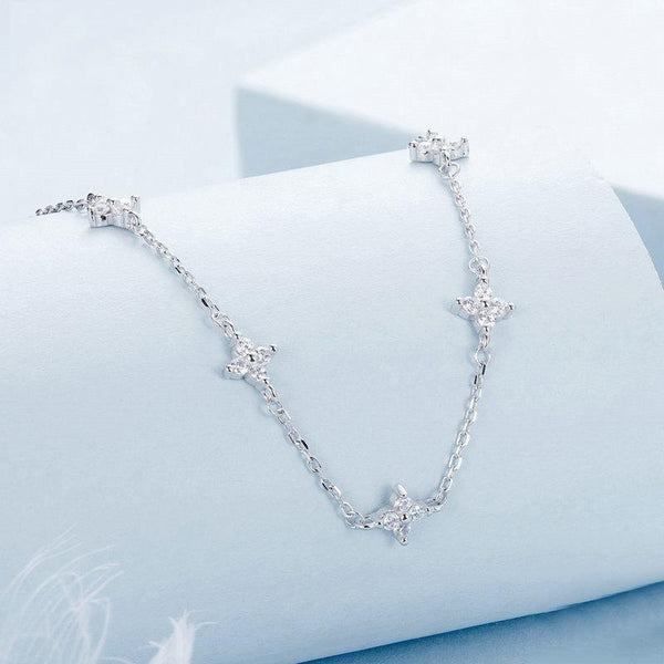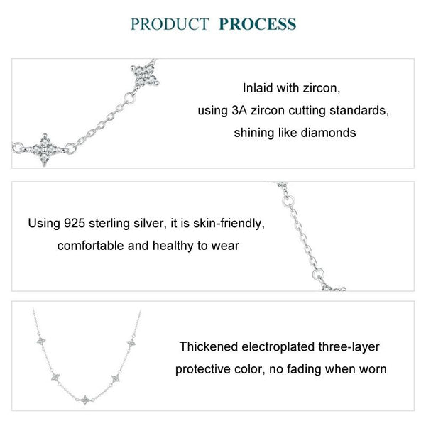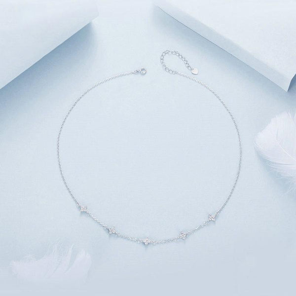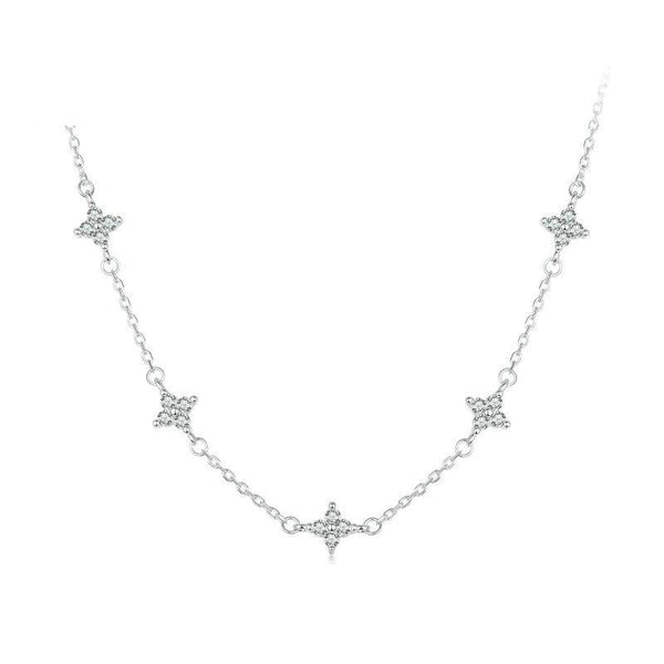 S925 Sterling Silver Platinum-plated Four-leaf Clover Star-shaped Clavicle Necklace(BSN394)