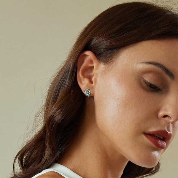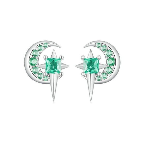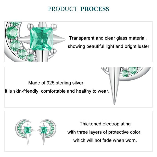 S925 Sterling Silver Platinum Plated Fresh Star Moon Earrings(BSE972)