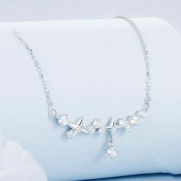 S925 Sterling Silver Platinum Plated Galaxy Clavicle Chain(BSN382)