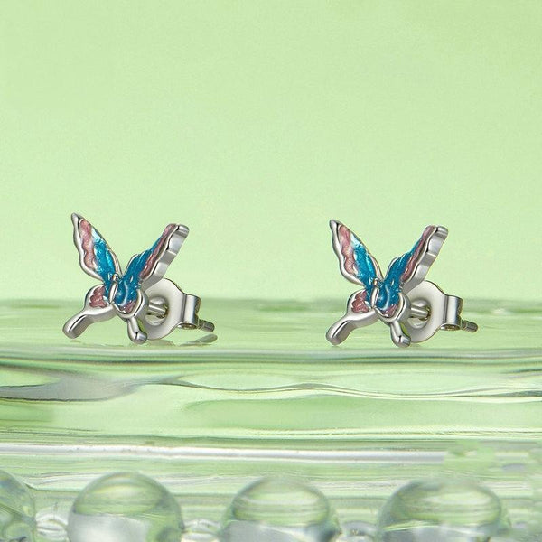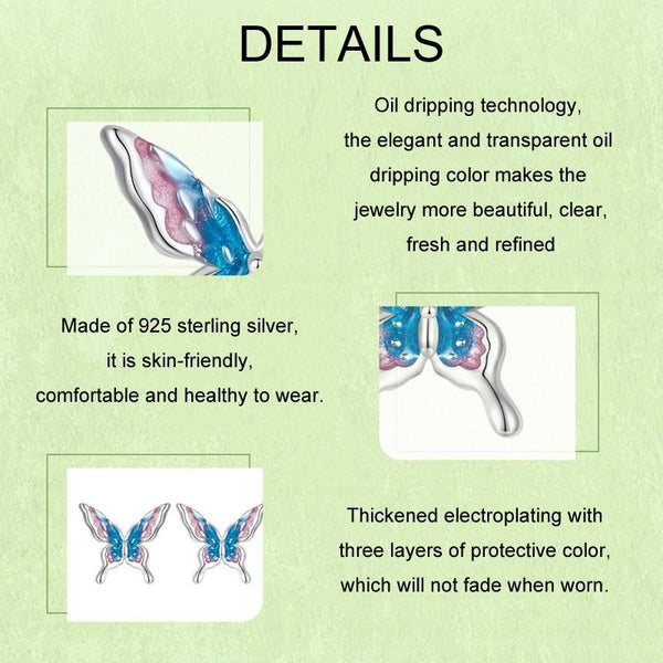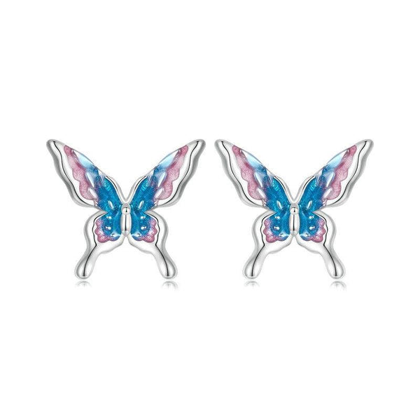 S925 Sterling Silver Platinum Plated Gradient Butterfly Earrings(BSE987)