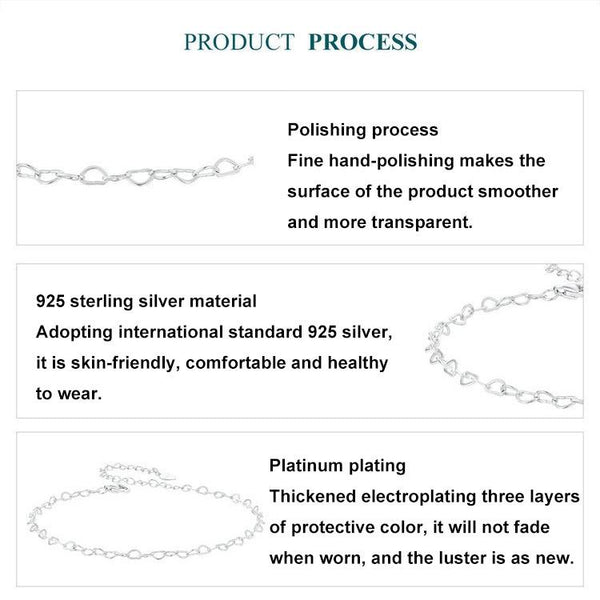 S925 Sterling Silver Platinum-plated Heart Buckle Anklet(BST007)
