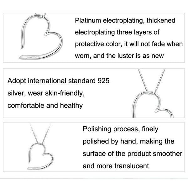 S925 Sterling Silver Platinum Plated Heart Necklace