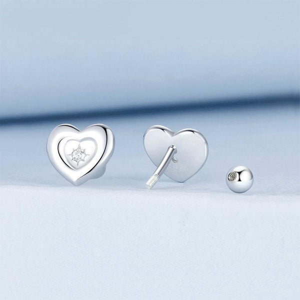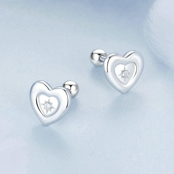 S925 Sterling Silver Platinum-plated Heart-shaped Star Earrings(BSE1045)