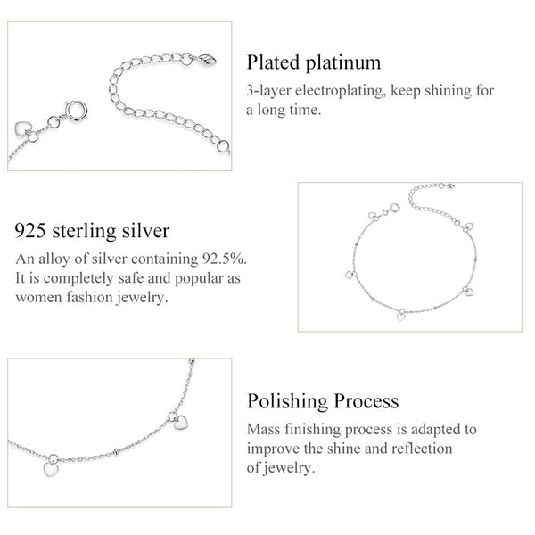 S925 Sterling Silver Platinum Plated Hollow Heart Bracelet