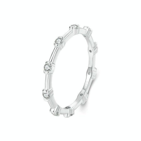 S925 Sterling Silver Platinum-plated Inlaid Zircon Ring Fine Sparkle Ring, Model: BSR576(6)
