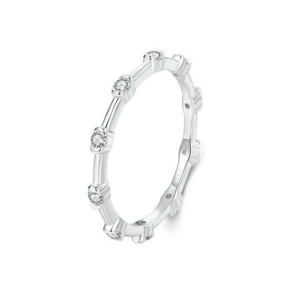 S925 Sterling Silver Platinum-plated Inlaid Zircon Ring Fine Sparkle Ring, Model: BSR576(7)