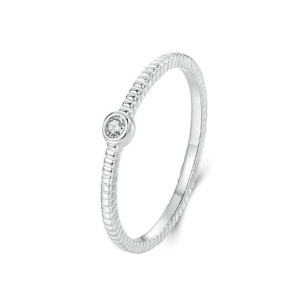 S925 Sterling Silver Platinum-plated Inlaid Zircon Ring Fine Sparkle Ring, Model: BSR577(6)