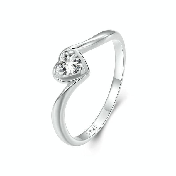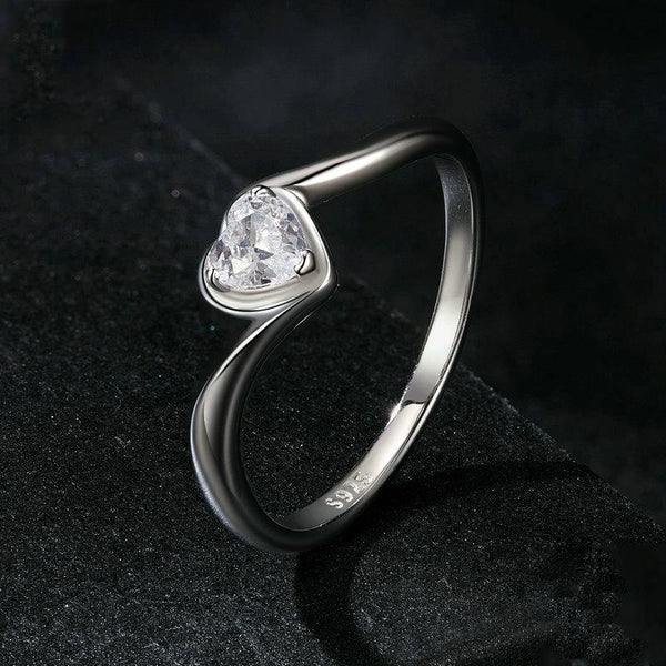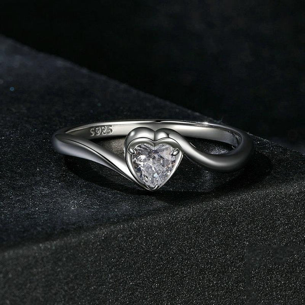 S925 Sterling Silver Platinum Plated Love Moissanite Ring, Size: No.8(MSR047)