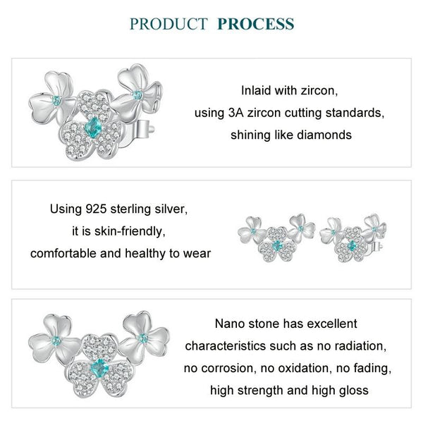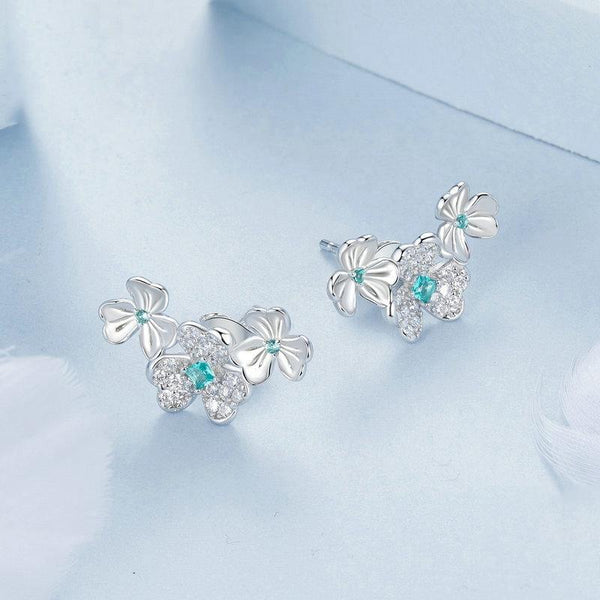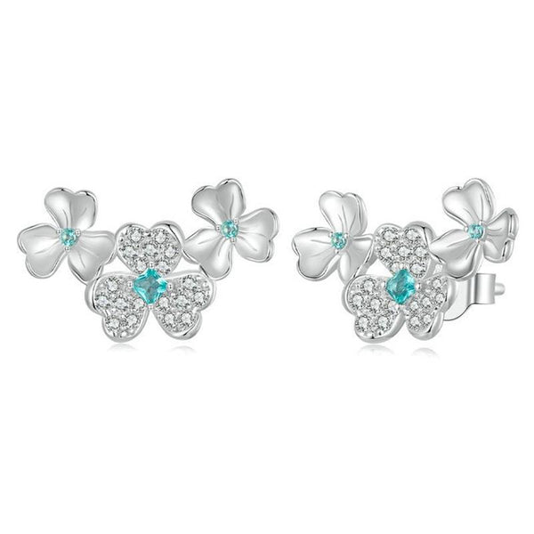 S925 Sterling Silver Platinum-Plated Lucky Clover Earrings(BSE1026)