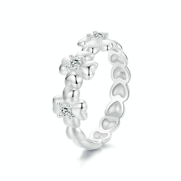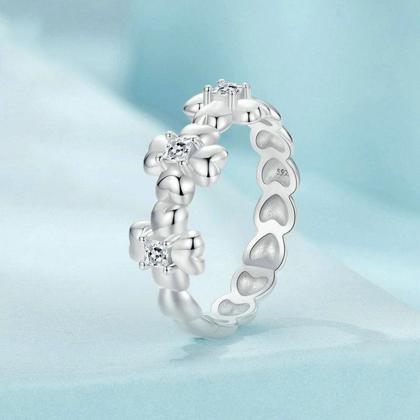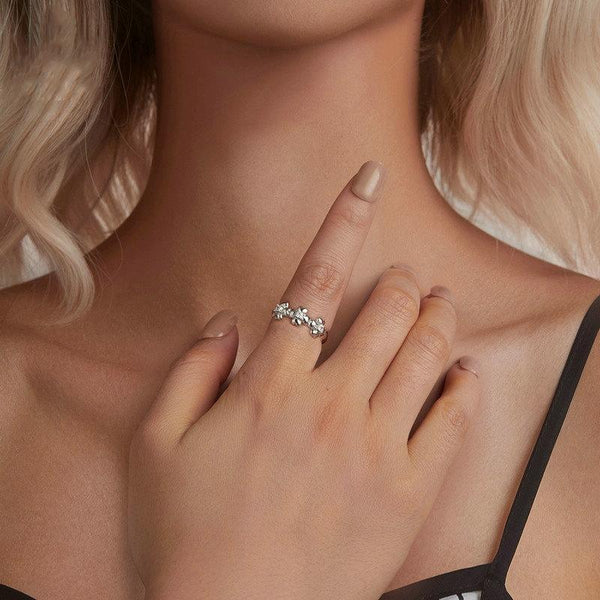 S925 Sterling Silver Platinum-plated Lucky Four-leaf Clover Ring, Size: 8(SCR1045)
