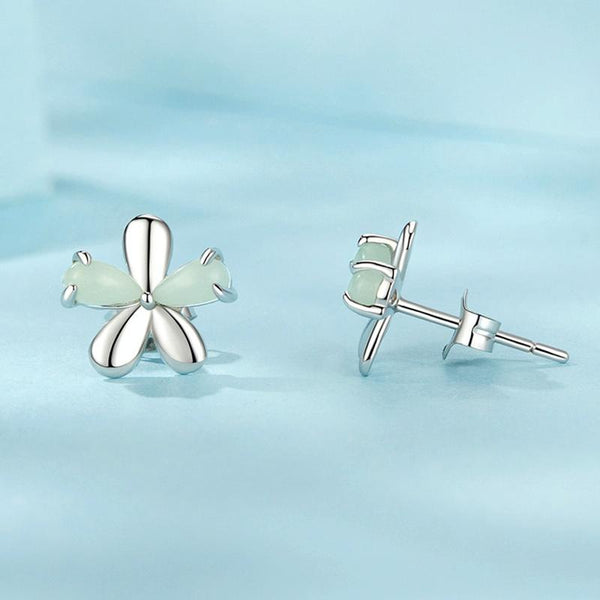 S925 Sterling Silver Platinum Plated Luminous Flower Stud Earrings(SCE1714)