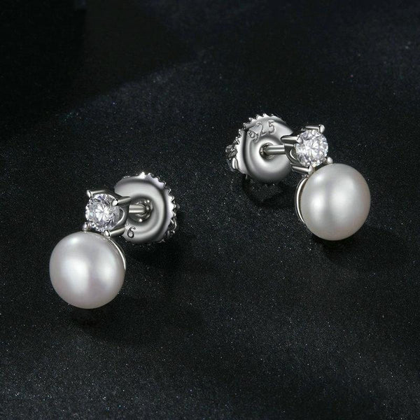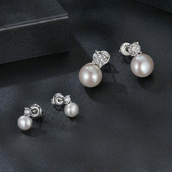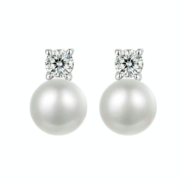 S925 Sterling Silver Platinum-plated Moissanite Pearl Earrings, Size: 0.1 Carat