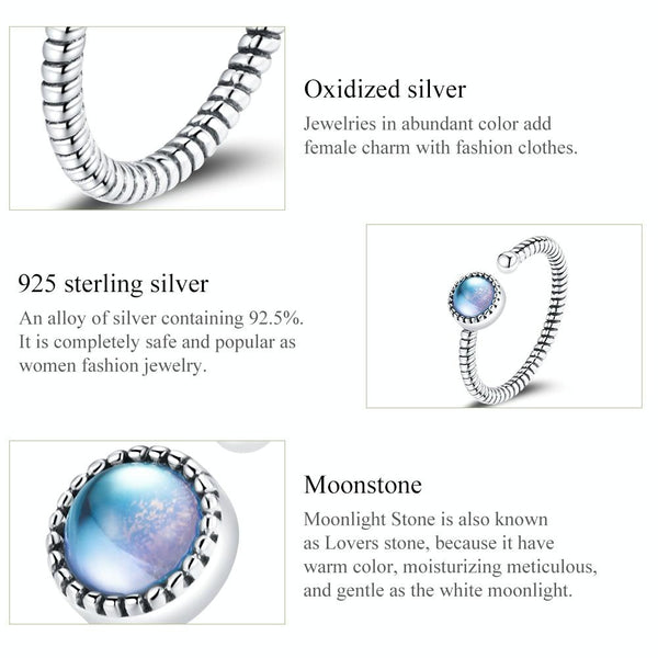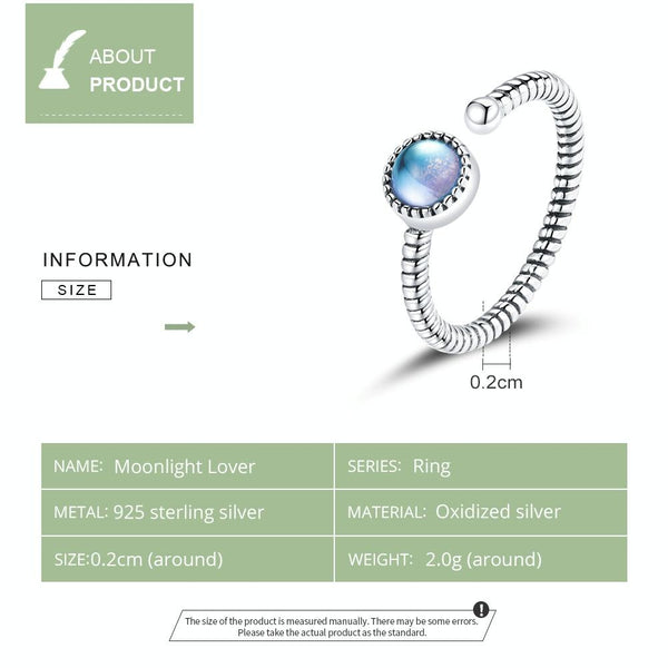 S925 Sterling Silver Platinum Plated Moonlight Lovers Women Open Ring