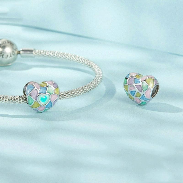 S925 Sterling Silver Platinum Plated Neon Color Love Heart-Shaped DIY Beads(SCC2708)